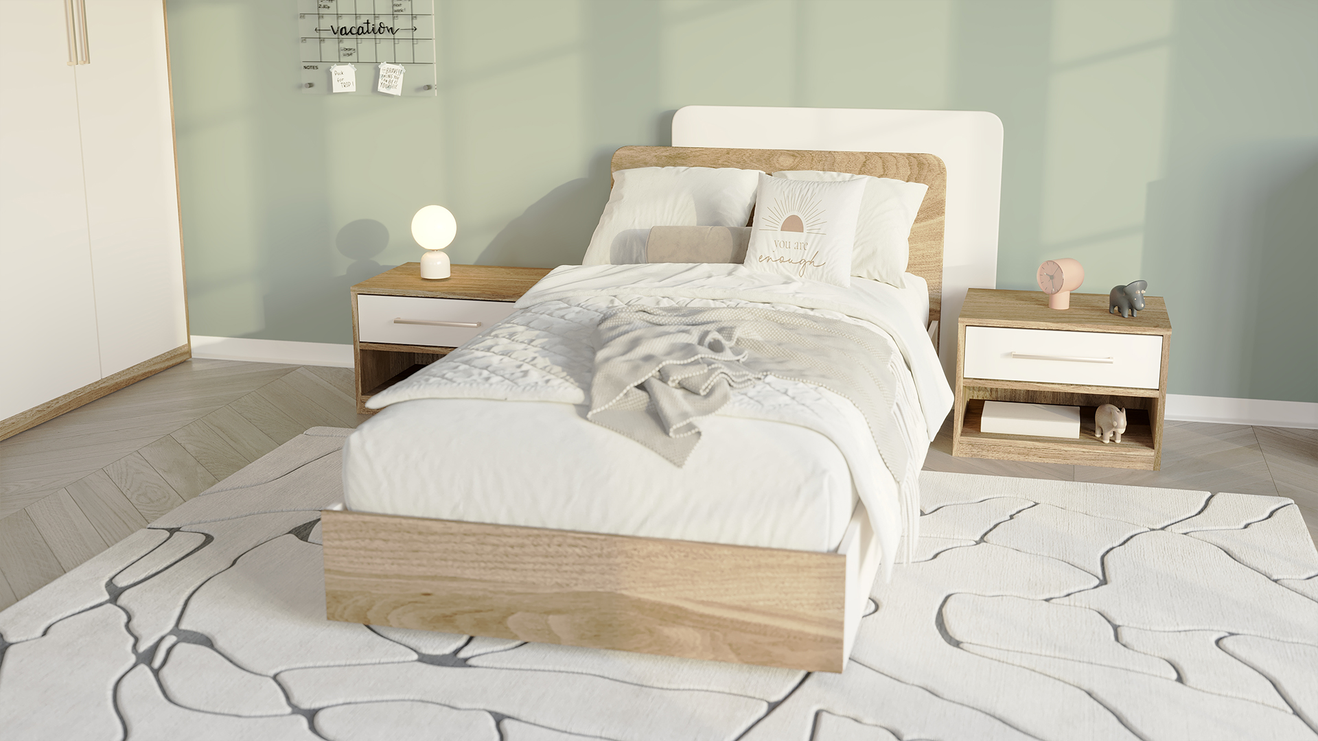 Rəng palitrası: Palıd (wood) və mat bej çalarları